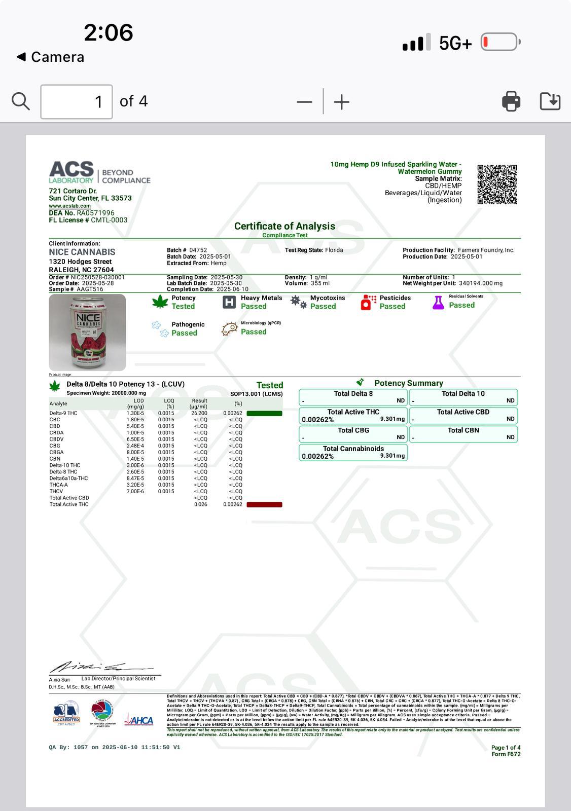 WATERMELON SELTZER COA