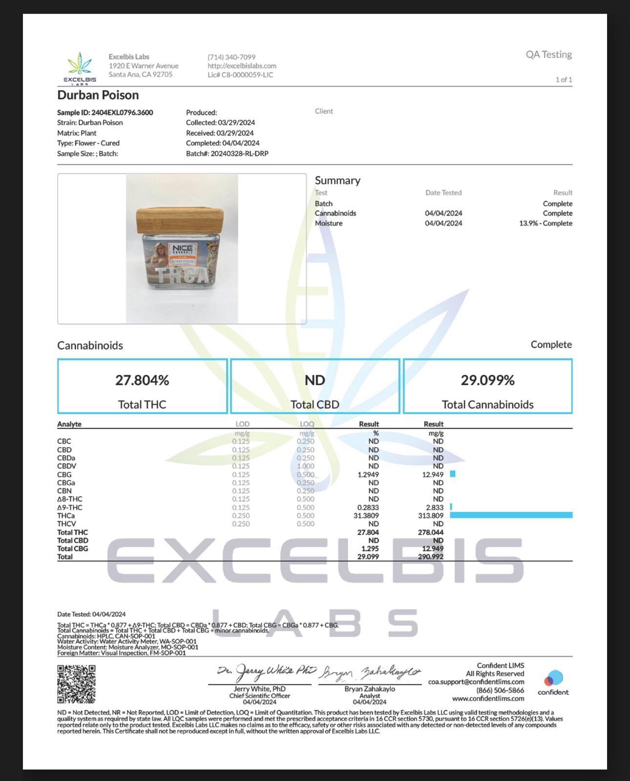 Nice Cannabis THC Packaged Flower Traditional Durban Poison 3.5G