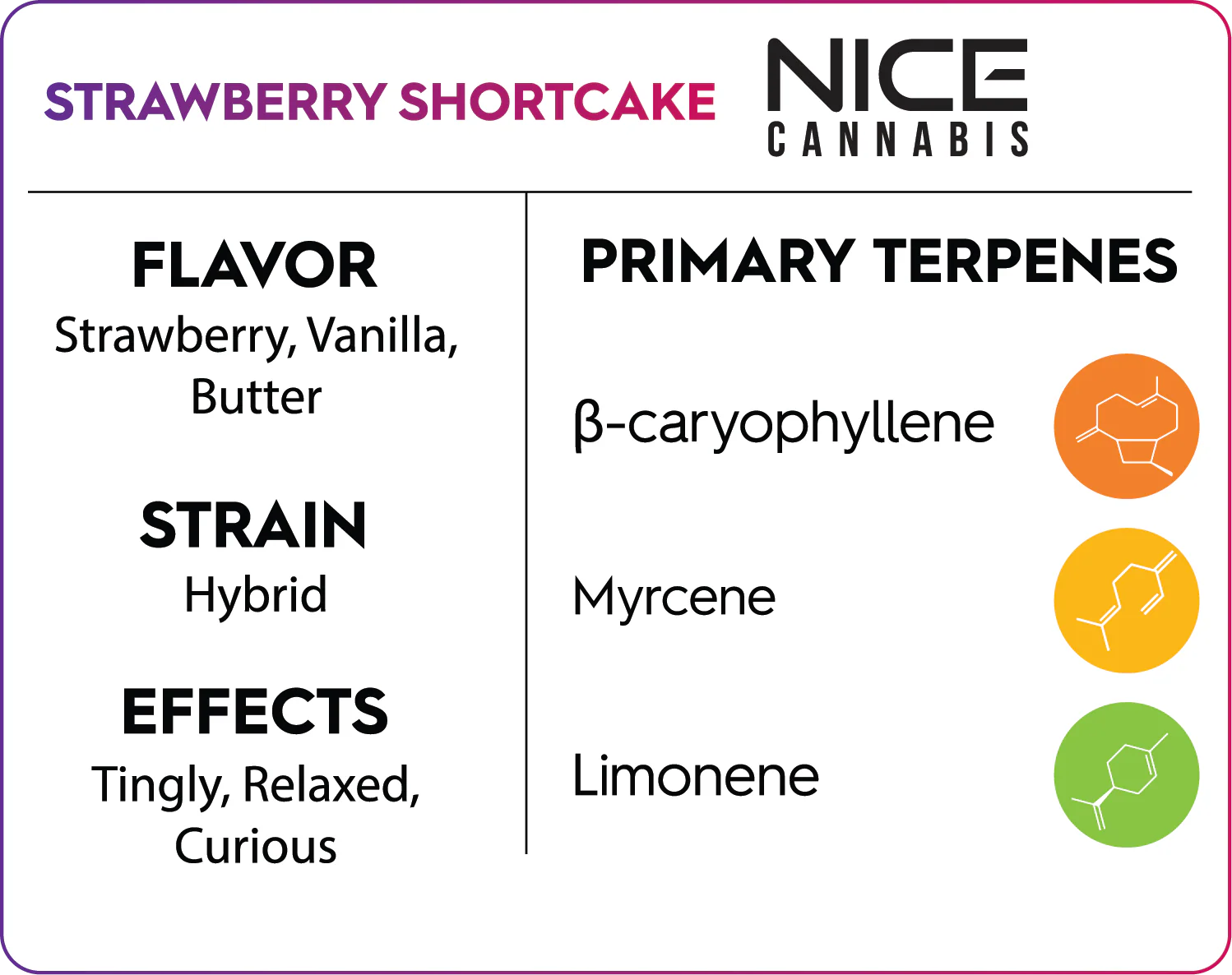 Sweet strawberries and creamy cake come together in this deliciously smooth hybrid. Strawberry Shortcake is mellow, mood-boosting, and ideal for winding down without losing your glow. Dessert-flavored bliss in every inhale.